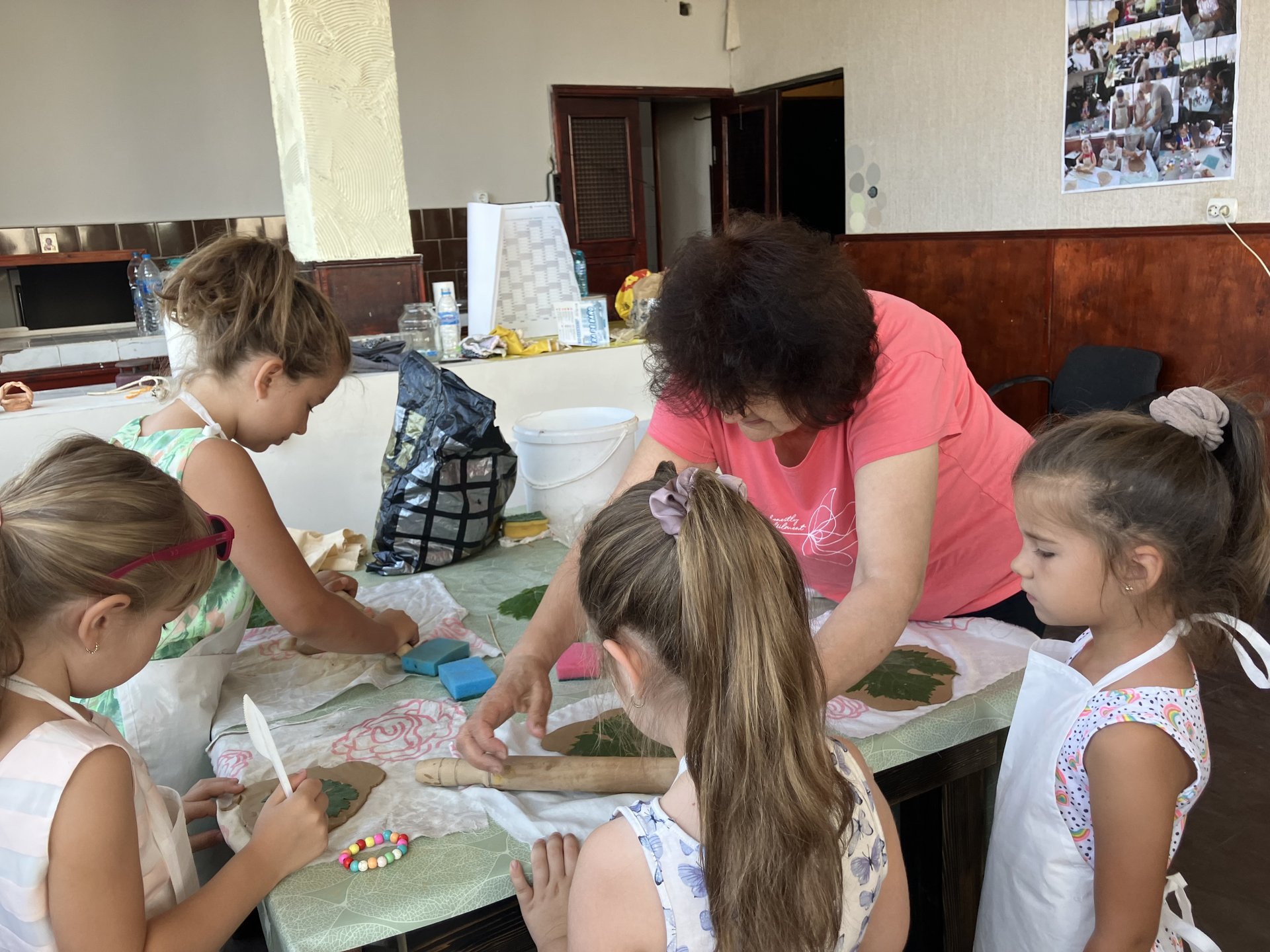 Работихме с глина с майсторите Доля и Весо, . Правихме накити от кожени изрезки и декорирахме глинени изделия с дизайнерката, майстор Светла, плетохме с майстор Елена. А на края – празнувахме рождения ден на малката Ванеса.